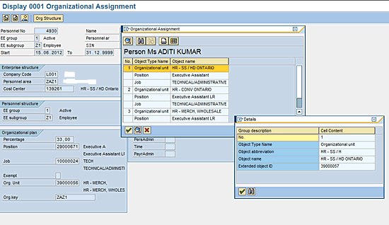 Display Employee Master Data – Organizational Assignment
