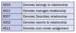 Table 2 is a list of the relationships and what they mean in SAP ERP HCM.