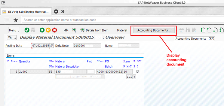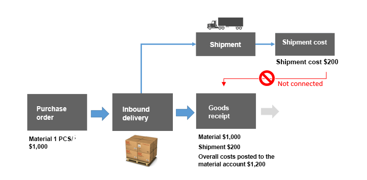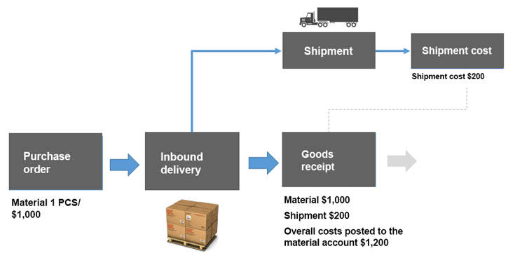 Shipment costs are not directly transferred to the accounting department, but are included in the materials management (MM) goods receipt document and added to the material.