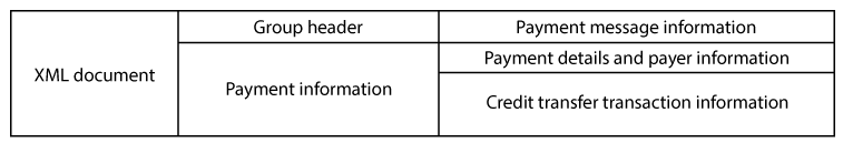 The XML payment message is composed of three parts: group header, payment information, and credit transfer transaction information as shown in Figure 1.