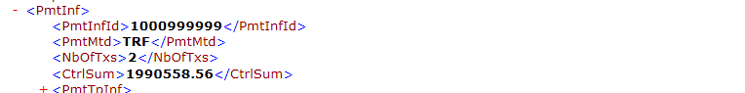 XML code for payment information for pain.001.001.03