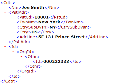 The ReqdExctnDt (requested execution date) tag contains the value date for the payment (Figure 6). This is the date the initiating party requests that the clearing agent process the payment.