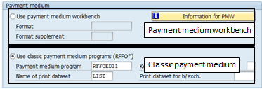 The payment programs (F110 and F111) automatically show the Create payment medium indicator if the payment run involves payment methods with a PMW format (Figure 60). You must select this indicator to create the payment files.