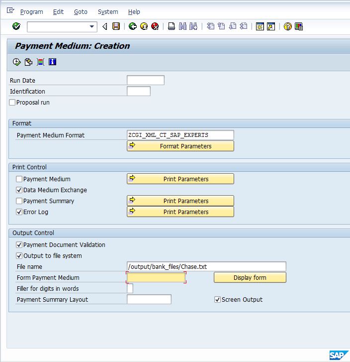 Execute the SAP Payment Medium Creation Program