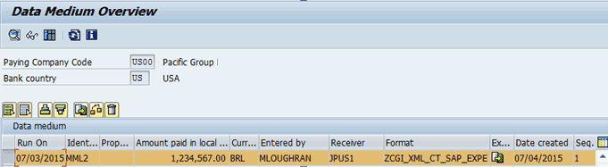You are then taken to the Data Medium Overview screen (Figure 63). Select the tab to the left of the payment run and click the display icon