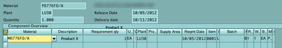 In this scenario one of the items is supplied by an external vendor as well as by its own manufacturing facility. The production planning module is not generally used in the aftermarket business. The solution to this complexity is to create a vendor and associate it with the plant by using transaction code MK02 and following menu path Purchasing Data > Extras > Add. Purchasing data (Figure 26).