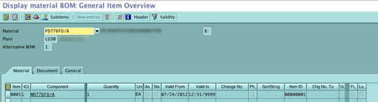 BOM showing parent and child material relaitonship