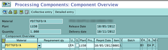When goods arrive at the subcontractor’s premises, the subcontractor then does a goods receipt and sends the goods receipt information through RA EDI message 861. When EDI message 861 is received at the company, a statistical goods receipt is performed. This means a goods receipt is done without receiving the goods and issuing those items to the subcontractor as components of AB against PO2. You can close PO1 because full goods receipt is done. If you go to a PO and click the Material Data tab, you see a Components button (Figure 12). If the BOM is maintained, it is populated automatically in the PO. If BOM is not maintained then you can manually populate it in the PO (Figure 13) through transaction code ME21N or ME22N and following menu path Item > Material Data > Component.