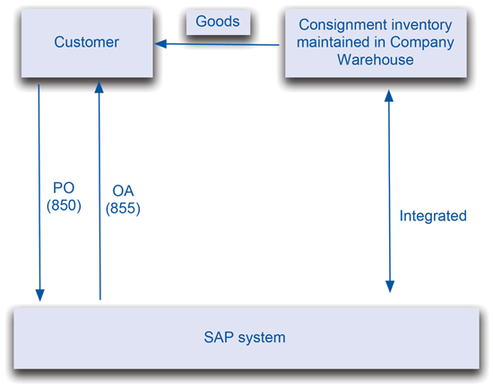 In this scenario consignment material is kept at a third-party warehouse (Figure 29). Whenever there is a requirement from a customer, the warehouse needs to be directed to ship the material to the customer.
