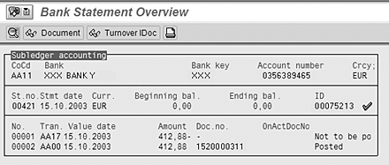 As I noted earlier, you can use RFEBKA96 to test electronic bank statements processing. With electronic bank statements, you want to check that the postings they generate are correct and that the statements clear the correct subledger documents. Testing to confirm that customer or vendor invoices recorded in the subledger are clearing and which documents are marked paid is one example of how the report can be employed. If you use report RFEBKA96 for testing, there is usually no need to delete financial documents. You may find it necessary, however, to reset the cleared documents using transaction FBRA.