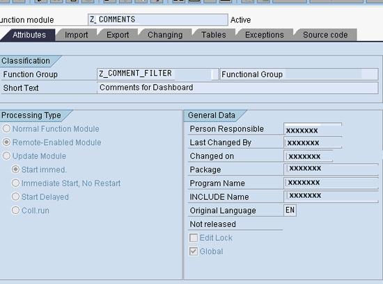 Figure 1) with settings for the name of the function module and the processing type. For our example, follow these steps: