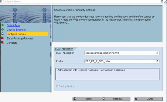 Figure 9) under the SOAP Application tab. Click the Continue button. SOAP is an essential component for configuring a Web service. The SOAP application details in