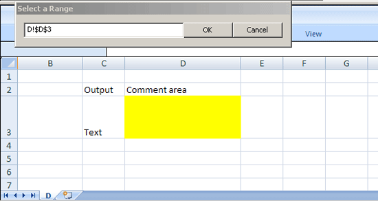 In the Output Values pane, map output parameter SelComment to the D3 cell of Sheet D as shown in