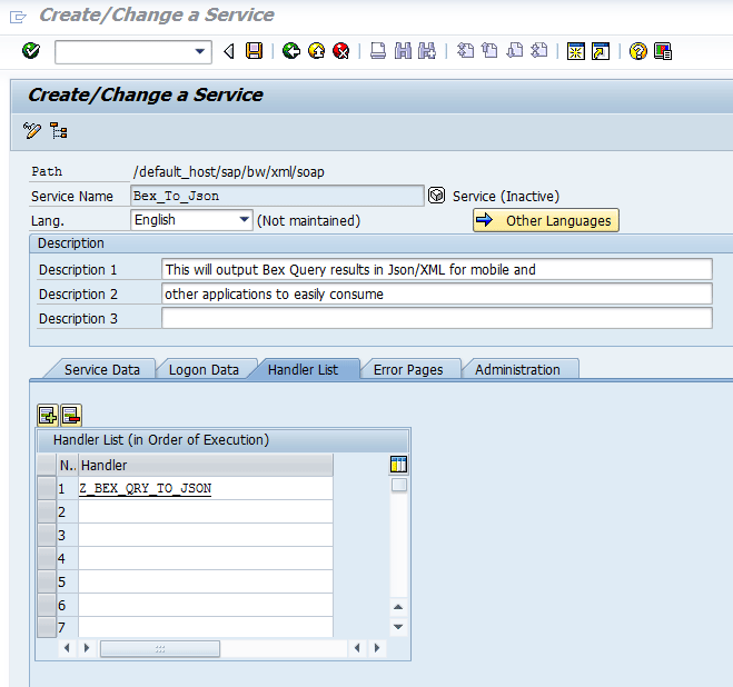 - On the SAP BW system, use transaction code SE80 to create a class and the necessary ABAP code for the handler (shown as the web server in Figure 1).
