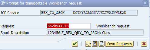 Enter the Package name and click the disk icon. This opens a screen with the transport number (Figure 25). Click the green checkmark icon and you should receive a success message that the new service has been saved (not shown).