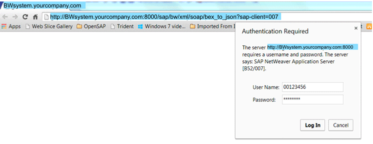 A sample URL to call the web service with BEx Query and other parameters