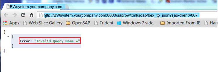 If you see the Error: Invalid Query Name message (as shown in Figure 30), you know that you have successfully completed the BW side of the work.