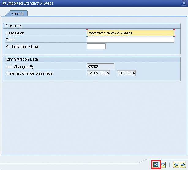 The maintenance of the XSteps is now finished and you can save the master recipe by going back to the previous screen and clicking the save icon (Ctrl+S).