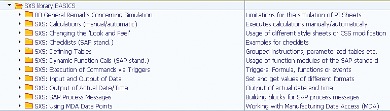 This library contains a variety of functions to be executed on PI sheets and includes the most basic actions, such as posting goods issues of components or the final product goods receipt to more complex functionalities, such as material quantity calculation or the integration with QM or DMS.