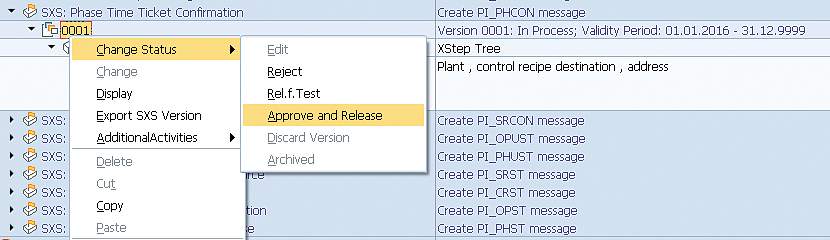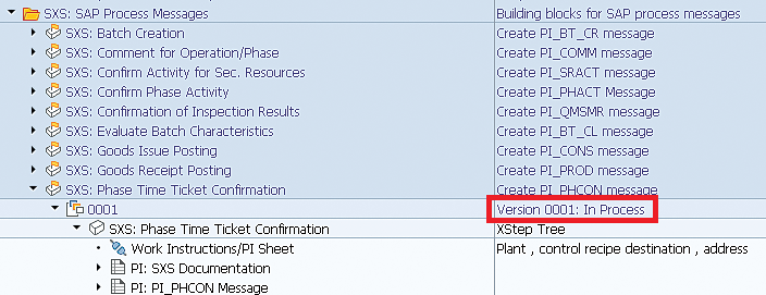 Expand the SXS: SAP Process Messages as shown in Figure 7. Note that in this folder the version 0001 exists for the standard XStep and that the current status is In Process. To use the standard XStep to create a PI sheet, the version must be released, and the first step to release it is to set the validity period.