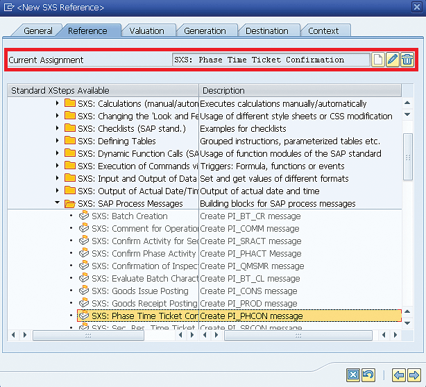 Because this process message posts a confirmation for a specific phase, you must also set a reference for this phase in the Context tab. Select the Context tab and double-click the desired phase (e.g., Phase 0200). Your desired phase is then updated in the Current Assignment field, as shown in Figure 15.