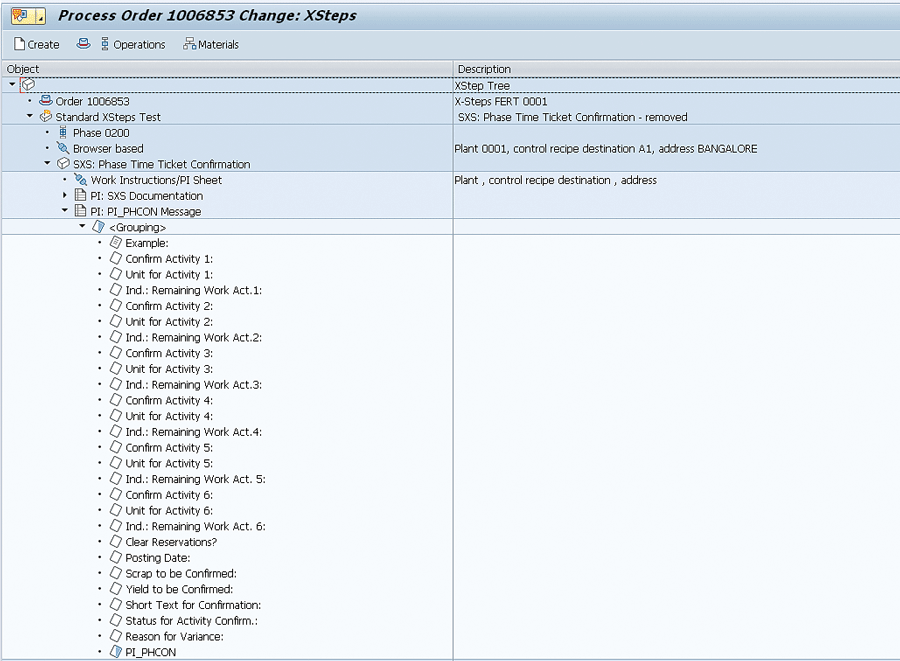 There are several different standard XSteps in the library and, for my example, you use a standard XStep to post a confirmation for a phase of a process order.