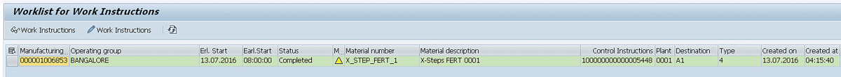 After you click the execute icon or press the F8 key, the system displays the generated work instruction, as shown in Figure 21.