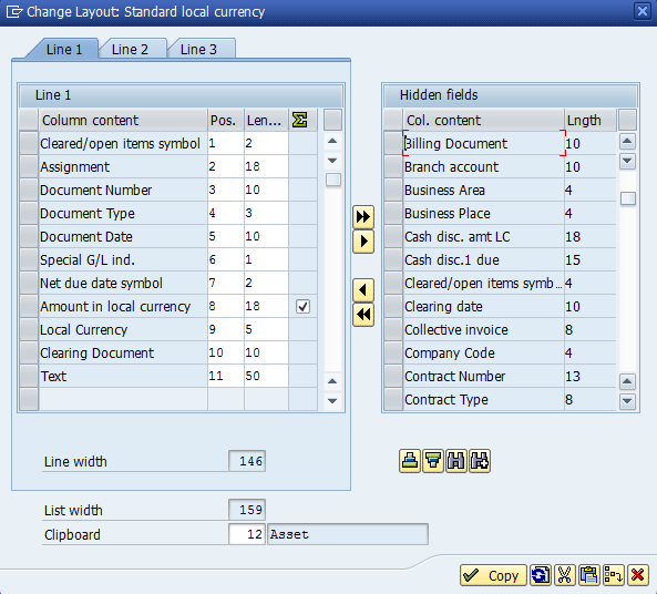Fields available for display in FBL5N