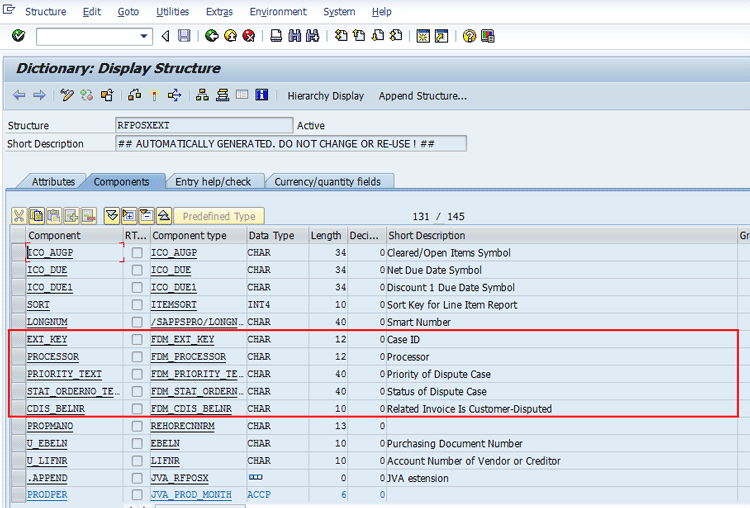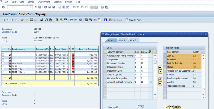 Figure 11Now, as structure RFPOSEXT is enhanced with dispute management fields, execute the customer line-item report FBL5N and validate if you receive dispute management-related information in the report. Figure 12 displays the FBL5N report for customer 100000 and company code 1000. This screen also displays dispute management fields (e.g., Case ID and Processor) that are available for selection in the layout.