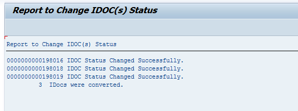 Execution output for the IDoc status change report