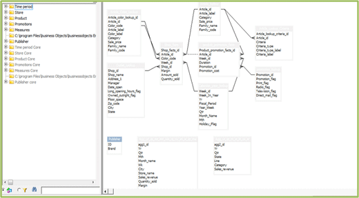 Step 1. Start with a pre-built linked universe. The linked universe is based upon the core universe concept as explained in the previous section. The example in Figure 3 is based on the eFashion universe that comes bundled with BusinessObjects Enterprise. The linked universe in this case has been named efashion_linked.unv. This universe needs to be created in the BusinessObjects 3.1 version.