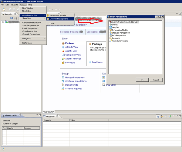 The SAP HANA Studio is organized based on various perspectives. Perspectives are predefined, delivered user interface (UI) layouts customized based on type of use. For example, the Administration Console is the perspective used for administrating loads and systems, whereas the Information Modeler perspective is used for data modeling and provisioning.