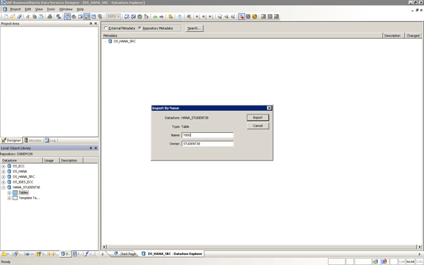 In the subsequent pop-up window, you need to manually enter the name of the table for which you want to import metadata from SAP HANA. For this example, import the metadata of table T850 from SAP HANA (Figure 20).