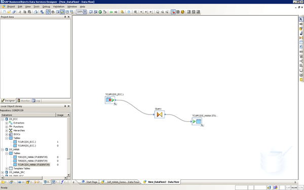 The final step is to create a simple Data Services job to load data to SAP HANA, which is a common Data Services activity (Figure 22).