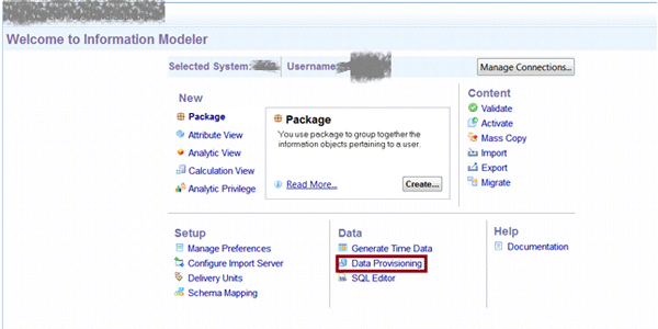 4. In the Information Modeler, navigate to Data Provisioning in the quick view (Figure 26).