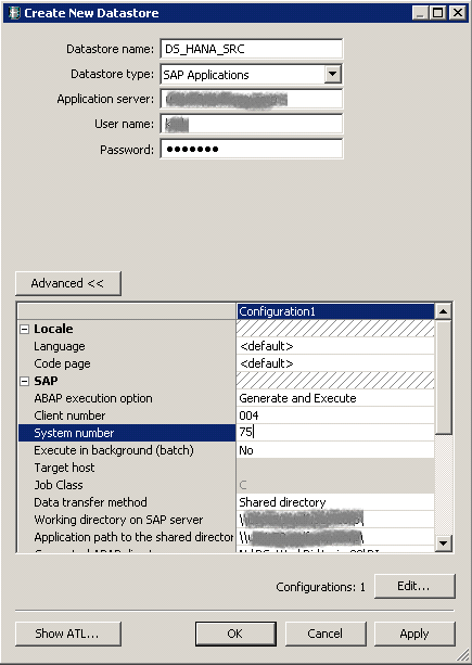 - Create a connection to the SAP target system from Data Services (source for SAP HANA)