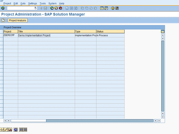 Step 1. Use transaction code SOLAR_PROJECT_ADMIN and choose your existing SAP Solution Manager project (Figure 1).