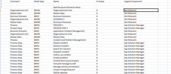 Step 6. Once the above file is ready, you can send it to the respective business process experts or owners so that all the business scenarios and processes can be mapped in SAP Solution Manager. After receiving the filled template (Figure 7), you can directly upload it to your existing SAP Solution Manager project.