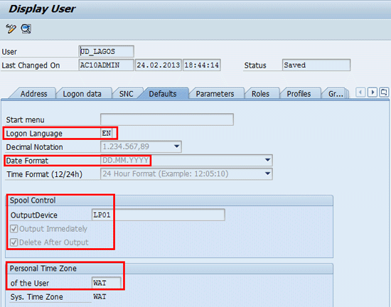 This capability provides control to access provisioning, saves time in maintaining numerous master records, and makes the assignment of transaction code SU01-specific values less error prone. The user defaults are normally associated with user details that exist in transaction code SU01 (user maintenance). A number of fields in the user master data can benefit from user default assignment.