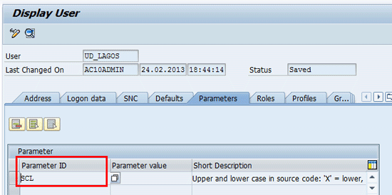 You can also set default values for user groups (Groups tab) and parameters ID (Parameters tab). The use case of this functionality varies depending on the business requirement. For example, you might want specific entries automatically assigned to a user group at the point of access provisioning for all systems in your landscape. Similarly, you can choose to default specific parameters to a user master record in a particular system in your landscape — for example, SAP NetWeaver Business Warehouse (SAP NetWeaver BW) systems only.