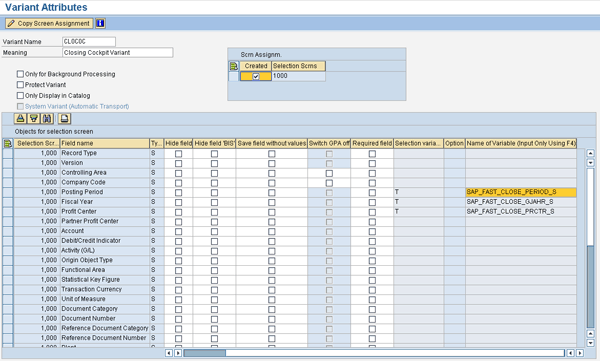 When you release a template from SAP Financial Closing cockpit, the selection variables shown in Figure 10 are populated with values. To get to Figure 10, use transaction CLOCOC, click Template/Task list > Create task list. This process is described in more detail in Gary’s article that I referenced above.