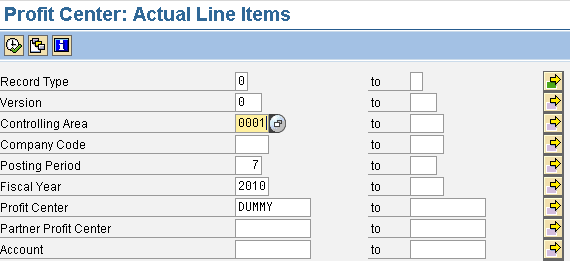 The Profit Center value DUMMY was automatically defaulted from the Profit Center Dummy folder. The benefit of using this process is that you just need to create one variant and the values for the profit center automatically default from the variable selection. In a similar way, you can default values for other organizational objects such as the company code, controlling area, and operating concern.