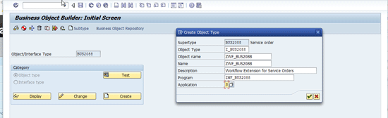 Execute transaction code SWO1. In the screen that appears, enter the BO (BUS2088) in the Object/Interface Type field. Click the Subtype button (Figure 4). In the pop-up screen, enter the appropriate information to create your objects and press the green check mark.