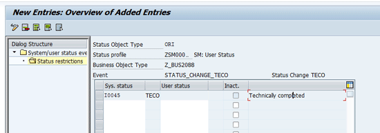 Set the restriction. Select the new line that you created in Figure 16, and double-click Status restrictions in the left window (Figure 17). You now can view the specific statuses to use to trigger the method. I use TECO for my example.