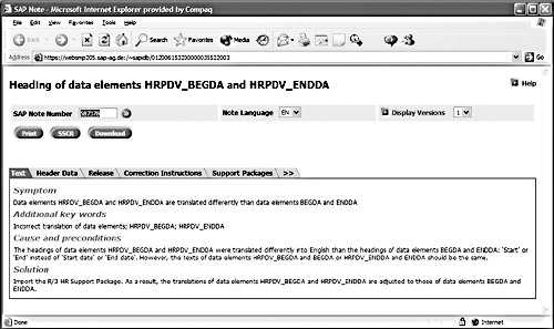 In each HRSP, you can usually find at least one note released as a correction for problems that were introduced by a prior note. Following the change management process for HRSPs makes it possible to locate these bugs in the testing phase before production is affected. When a bug is found, send an OSS message to SAP. A correction will be developed and released in a new SAP note. The new note will be assigned to a future HRSP. For the sake of illustration, let’s assume HRSP 70 introduced a bug, and SAP has assigned the note that corrects the bug to HRSP 74. There are two choices. You can delay installation of HRSPS 70 and 71 until after HRSP74 becomes available, or you can manually apply the note that corrects the bug just after import of the available HRSPs.