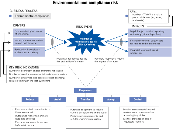 The documentation of a new risk in SAP BusinessObjects Risk Management 3.0 includes the drivers (i.e., root causes) and impacts (i.e., consequences) a risk event can have. Drivers and impacts are grouped in categories as part of the risk classification system. Once the risk drivers are identified, forward-looking key risk indicators (KRIs) need to be aligned with the drivers. The KRIs continuously monitor operational systems (both SAP and non-SAP) and raise alerts or trigger risk assessments before the risk occurs. As risks do not occur in silos, you also need to examine how risks influence each other across organizational boundaries in terms of the probability and impact of a risk event. Finally, for reporting and consolidation purposes, the application allows you to relate a risk to a number of underlying similar risks.
