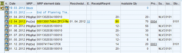 7, the quantity in the stock transport requisition is correct. However, the date of availability is 01.04.2012 in the virtual plant, whereas the production ends on 12.04.2012 in the production plant. You need to correct the date either in the production order or the stock transport requisition.