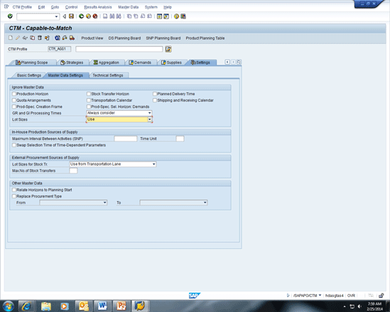 This step is done to recalculate the stock transfer requisitions in consideration of the demand priority and also to build up the pegging relationships between the production and the demand at the distribution centers. The CTM profile should have the following settings maintained: