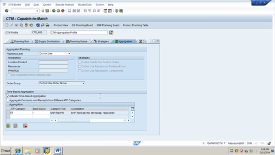 When you are using the aggregation, it is important to make sure that the Demand Date is set correctly in the global CTM settings to meet business requirements. The concept of this setting is to address the fact that the aggregated demand is the sum of individual demands, which may have different demand dates.