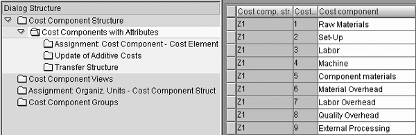 Select the deactivated cost component structure and double-click on Cost Components with Attributes to display a list of cost components (Figure 6).